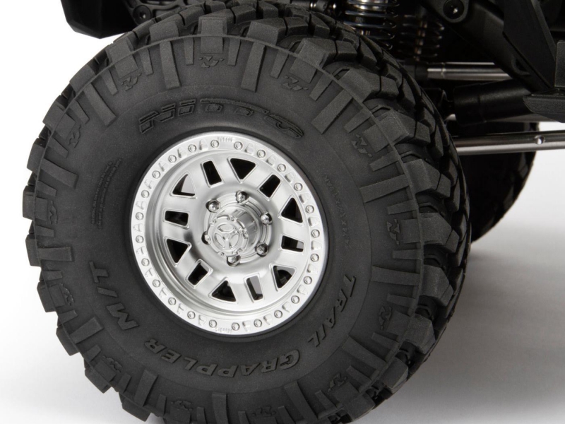 The S30 compound Nitto Trail Grappler tyres included with the SCX10™ III Jeep® JL Wrangler kit are taller and wider (4.74 x 1.7), providing more ground clearance and more grip in the variety of terrain that you will find while you're off-roading.
