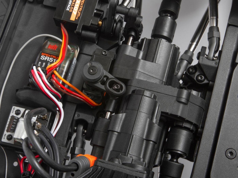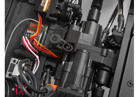 The kit's versatile transmission can be built in several ways. If you're using a 3-channel radio like the Spektrum™ DX3™, you can set it up with a third-channel DIG function that lets you lock the rear axle from the transmitter for front wheel drive and a tighter turning radius. Another 3-channel option is to set up the vehicle with a two-speed transmission to select between high and low speeds. To have access to the two-speed transmission and DIG function simultaneously, just add another servo and use a radio with at least four channels (such as the 5-channel Spektrum™ DX5).