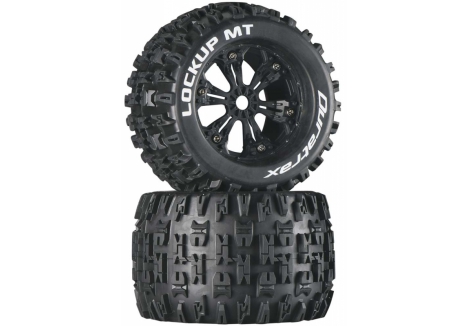 Upgrade your monster truck with Duratrax Lockup MT 3.8″ tires pre-mounted on robust black wheels.