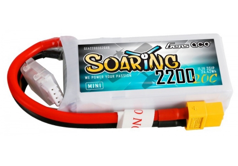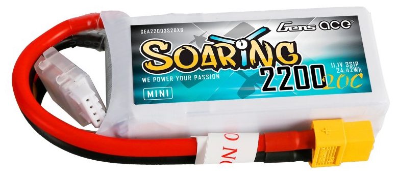 Gens ace Soaring Mini 2200mAh 11.1V 20C 3S1P Lipo Battery Pack Specs: