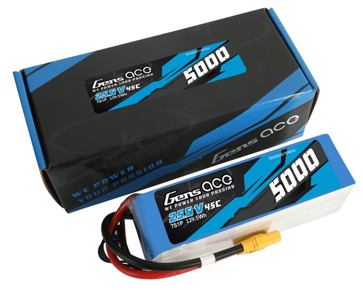 - (1) Gens Ace O-G7S5000-45X9 7S 25.9V 5000mAh 45C LiPo Battery with XT90 Connector