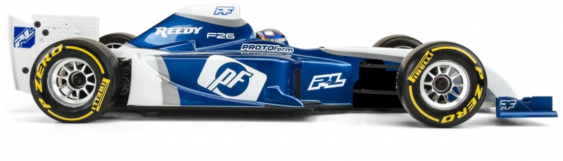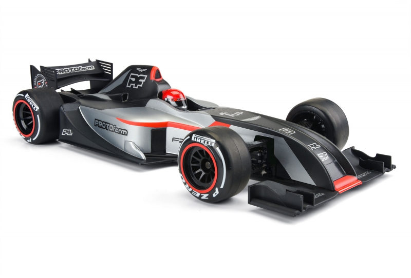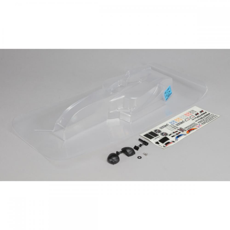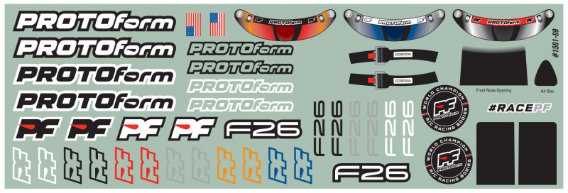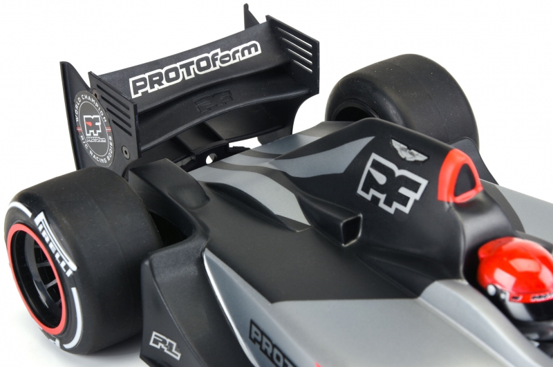 The area surrounding the rear pod has ample clearance for batteries, side tubes and motor wires, making the F26 incredibly easy to mount. Included with this body is a lightweight nylon driver helmet for an added touch of scale realism. The decal sheet includes steering wheel and seatbelt graphics as well as helmet visors and PROTOform logos in a wide variety of colors. This body is pulled in our lightweight, high-quality polycarbonate with overspray film, and is proudly Made in the USA.