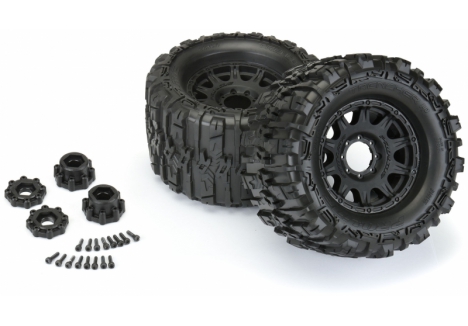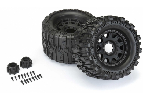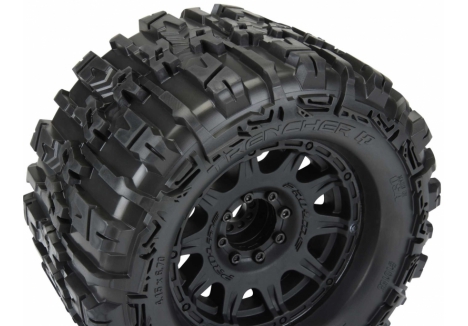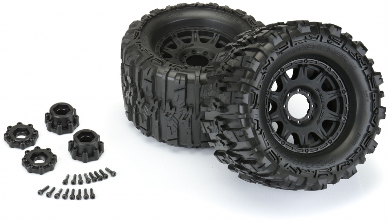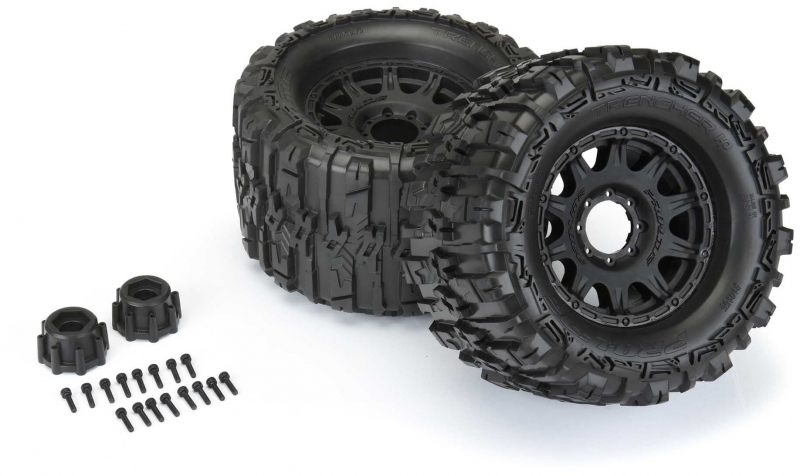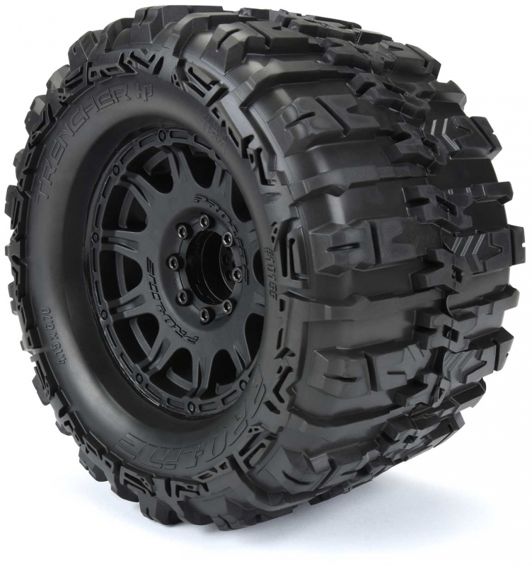 The new Belted Trencher HP 3.8" tires come Pre-Mounted on the next generation 3.8" wheel design from Pro-Line, the Raid 3.8" Removable Hex Wheel! Imagine being able to replace a damaged wheel hex without needing to replace your glued tires! These new Raid 3.8" wheels make this possible by using a unique 8x32 interlocking hex design that is secured to the wheel by 8 M3 screws that are spaced 32mm across. The hexes are included and are also available separately (PRO634500). The built-in adjustability and ease of use make this a new must-have wheel for bashers everywhere! Be the first to own the latest and greatest technology from Pro-Line, get the new Trencher HP 3.8" Belted tires now!