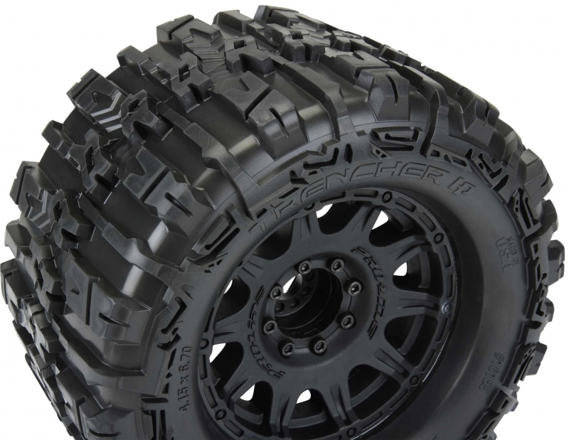 Pro-Line is proud to introduce the History-making Trencher HP 3.8" BELTED All Terrain Truck Tires! Pro-Line has developed the technology to mold a High-Performance herringbone weave pattern Belt inside of the relentless, tall and grippy tread of the new Trencher HP. These are not your average belted tires! Made for All Terrain bashing, the Trencher HP 3.8" tires will not balloon or expand during use and will still provide the incredible grip that you expect from Pro-Line tires due to the soft M2 compound. Just like all Pro-Line's tires, they are proudly Made in the USA! Like the original Trencher X 3.8" tire, the next generation Trencher HP 3.8" is destined to become the ultimate, go-to Bash tire for your truck!