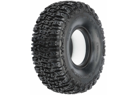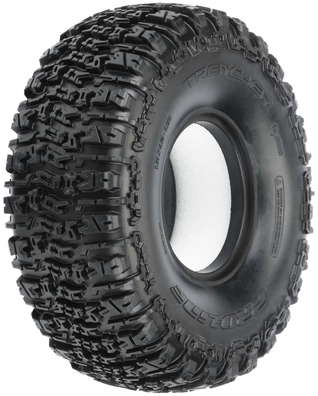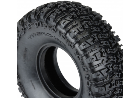 This is a pair of Trencher 1.9" Rock Crawling Tires. The almighty Hyrax finally has some real competition with Pro-Line's all-new 1.9" (4.75" Tall x 1.81" Wide) Trencher Tire! Inspired by Pro-Line's insanely popular all-terrain Trencher tread, this Class 1 legal crawler tire is ready for anything your Scale Adventure might throw at you. The Trencher 1.9" features an extremely aggressive tread pattern with each tread block containing multiple sipes and multiple levels for incredible tread flex while still looking great on a Scale Rig. The highly detailed connected tread on the sidewall of the Trencher extends out for great side-hilling performance that only slides out when you want it to! The Trencher 1.9" tire is made from Pro-Line's Legendary G8 material and Super Soft Predator Compound, so you know it provides the performance you can depend on. The future of 1.9" tire performance is here with Pro-Line's new Class 1 Trencher tires! Get your own set of Trenchers today!