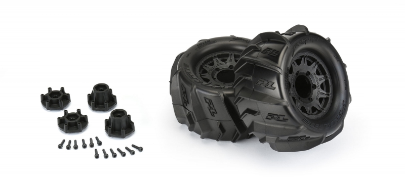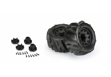 The Dumont 2.8" tires come Pre-Mounted on the next generation 2.8" wheel design from Pro-Line, the Raid 2.8" Removable 12mm Hex Wheel! Imagine being able to easily change the offset of your wheel to fit different applications by simply changing out the hex! You can go from the included 12mm narrow offset (2wd Stampede®/Rustler® Rear) to the included 12mm wide offset hexes (2wd Stampede®/Rustler® Front and 4x4 Stampede®/Rustler® Front and Rear) quickly and easily. Also, imagine being able to replace a damaged wheel hex without needing to replace your glued tires (PRO633500 Replacement Hexes) or even upgrading your wheels to 14mm (PRO634700 Sold Separately) or 17mm wheel hexes (PRO633600 Sold Separately) for extreme use! These new Raid 2.8" wheels accomplish all of this and more by using Pro-Line's unique 6x30 interlocking hex design that is secured to the wheel by 6 M3 screws that are spaced 30mm across. The built-in adjustability and ease of use make this a new must-have wheel for bashers everywhere!