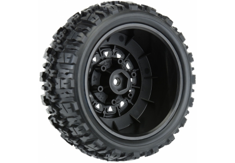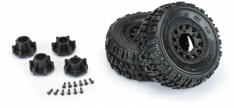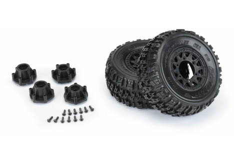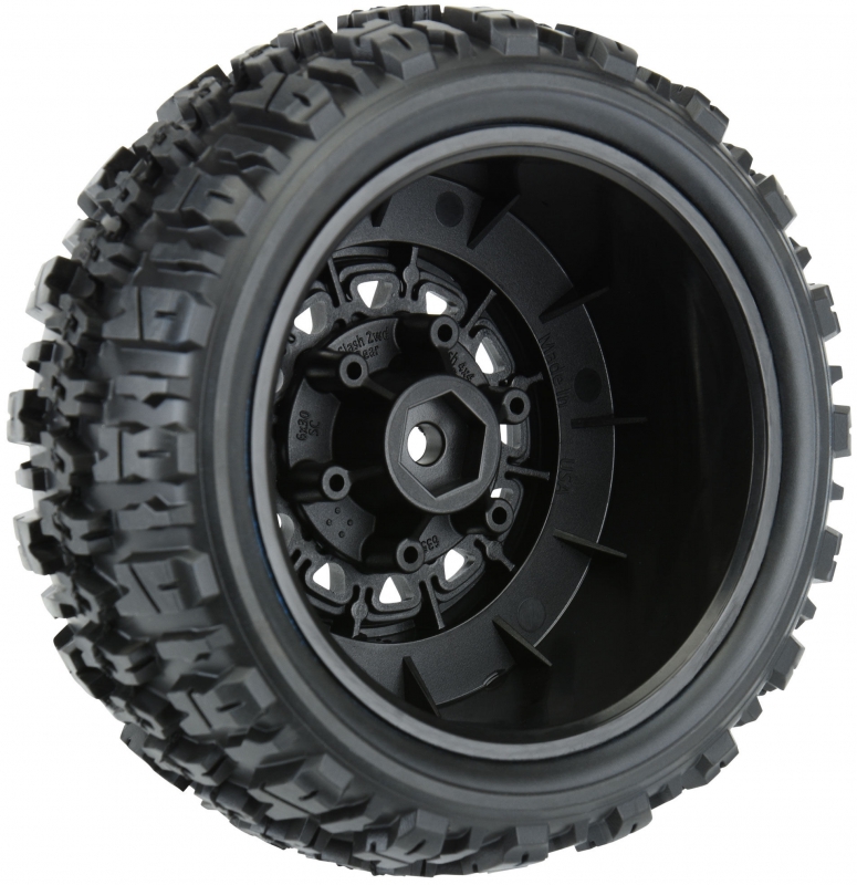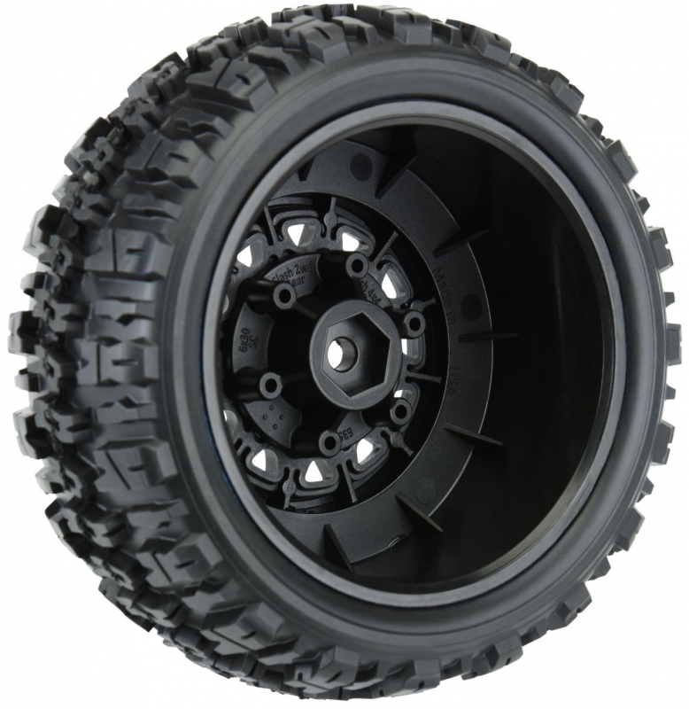 PRO119010 | Trencher X SC 2.2"/3.0" All Terrain Tires Mounted on Raid Black 6x30 Removable Hex Wheels (2) for Slash® 2wd & Slash® 4x4 Front or Rear