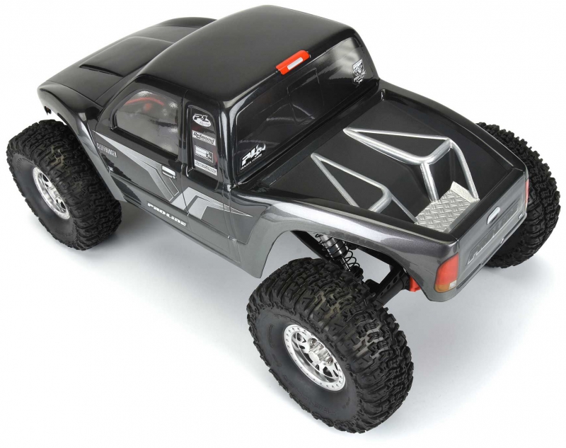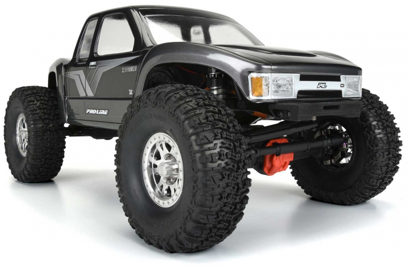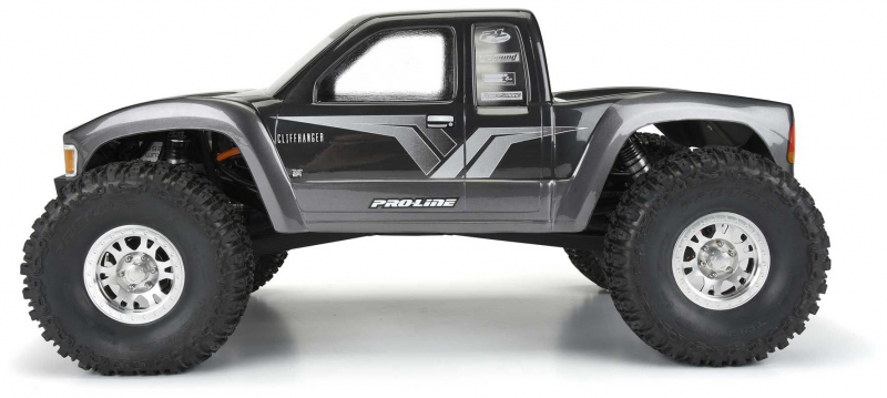 Introducing the all-new Cliffhanger High Performance Rock Crawling competition body from Pro-Line that was developed specifically for 12.3" wheelbase Class 2 and Class 3 vehicles. Scale competition crawling is a growing part of the overall rock crawling movement and Pro-Line's Cliffhanger body provides everything that these competitors have been asking for. The Cliffhanger features a pinched front end and a dove-tailed rear end for maximum tire clearance while still maintaining a true-to-scale appearance. The Cliffhanger is made from a single piece of crystal-clear polycarbonate to save on weight and has a molded-in drop-down bed to make room for you to add your favorite scale accessories. Everything on the Cliffhanger body has been optimized for maximum crawling performance while still complying with the letter and spirit of the competition crawling rules. Don't get stuck behind on the rocks, get your very own Cliffhanger body today!
