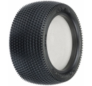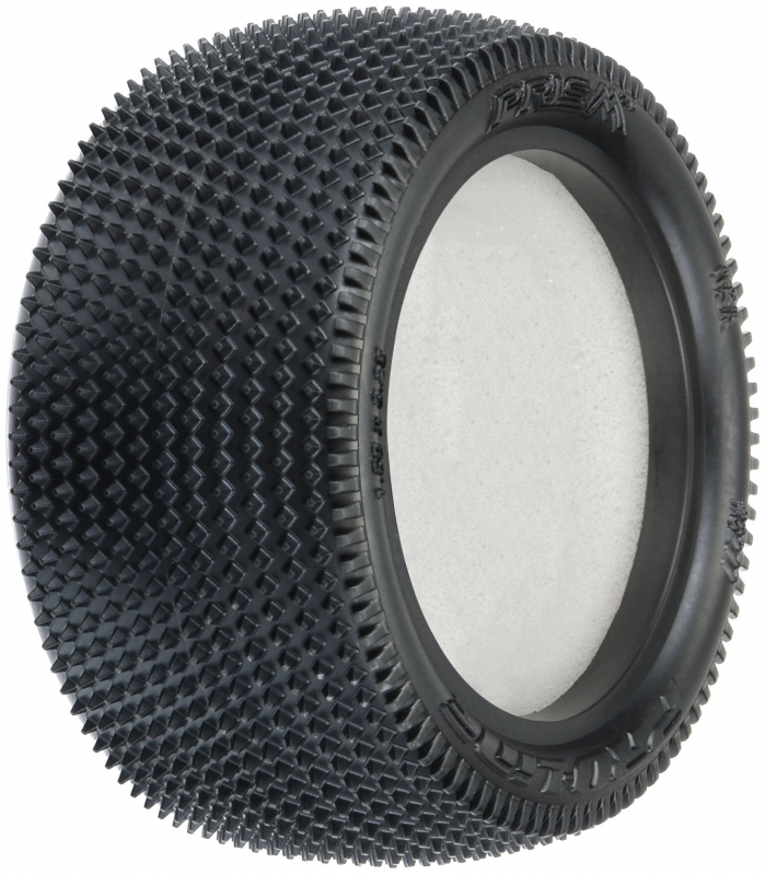 This is a pair of Prism 2.0 Buggy Rear Carpet Tires. Introducing the Prism 2.0 Carpet Buggy Rear race tire! The Prism 2.0 features even more Ultra-Sharp Prism-shaped Pins when compared to the original for longer lasting tread and more consistent performance. The Prism 2.0 features a new lower profile tire carcass shape that lowers your car's center of gravity for improved corner speed. The Prism pins are positioned with the knife edge pointed front to back and side to side for maximum grip and stay sharp even as they wear down. The new tire also features directional side tread so you can tune the performance of your tires to the current track conditions. You can choose to mount the standard Prism pins on the outside for more aggressive grip, or you can mount the vertical side pins to the outside for more forgiving grip. The Prism 2.0 tire is another leap forward in the hot carpet racing scene; be the first with the fastest carpet tire yet - Pro-Line's Prism 2.0!