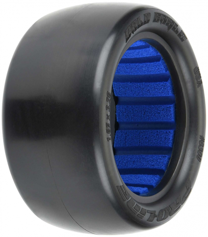 Pro-Line's Bald Eagle tires have landed! Introducing Pro-Line's ready-made Bald Eagle 2.2" slick tires for 1:10 Buggy. Many indoor off-road racetracks now have crazy amounts of traction eliminating the need for traditional treaded tires. Pro-Line's Bald Eagle tires are made specifically for racers currently running full slick tires, saving time and effort from having to grind treaded tires down. The shape of the Bald Eagle tire has been expertly refined to give you the best possible performance and is available in both MC (Clay) and S3 (Soft) compounds to suit your current track conditions. Don't settle for anything less than the best in American-made, screaming eagle performance with Pro-Line's Bald Eagle tires!