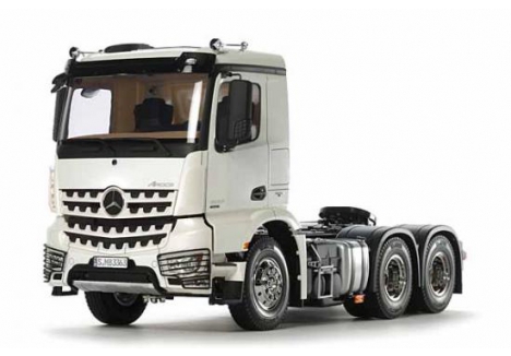 This 1/14 scale tractor truck recreates the Mercedes-Benz Arocs 3363 3-axle truck, which is the first narrow bodied European tractor model in the Tamiya Tractor Truck Series. The full-size subject is the German company's heavy duty tractor head that debuted in 2013. Powered by a 630hp 15.6-liter inline-6, the actual Arocs is capable of hauling massive loads of up to 250 tons.