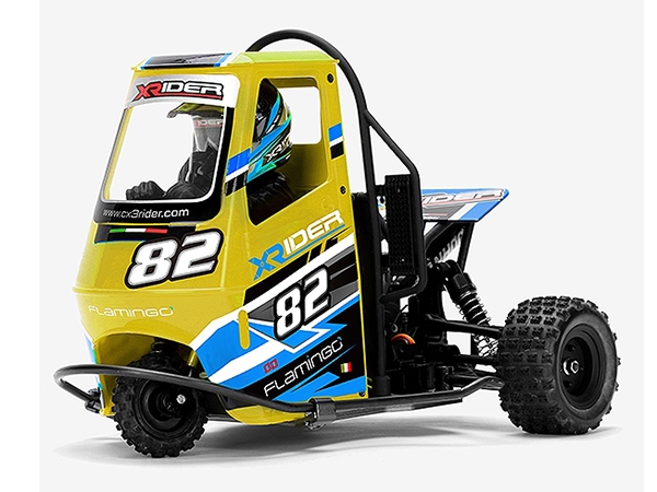 Inspired by the classical Italian ‘Piaggio Ape’ 3-wheel vehicles that are based on a Vespa scooter the X-Rider Flamingo is a unique cute bundle of fun that every R/C fan needs to enjoy.