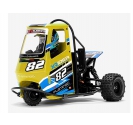 Featuring a hard ABS moulded cab and entertaining cartoon style ‘bobbing head’ driver figure the Flamingo is available in a choice of three vivid colours. A steel roll bar runs around the outer edge of the chassis to help prevent tipping during hard turns even though you will lift rear wheels and drift! Mounted to a thick 6061 aluminium main chassis the 370 brushed motor, gearbox with heady-duty metal gears and 800mAh battery are all neatly housed under the cab and a special immitation engine block with moulded exhaust.