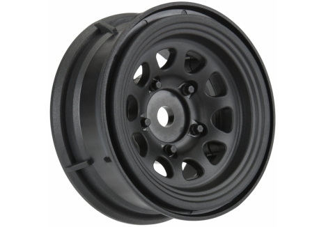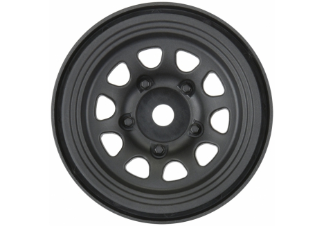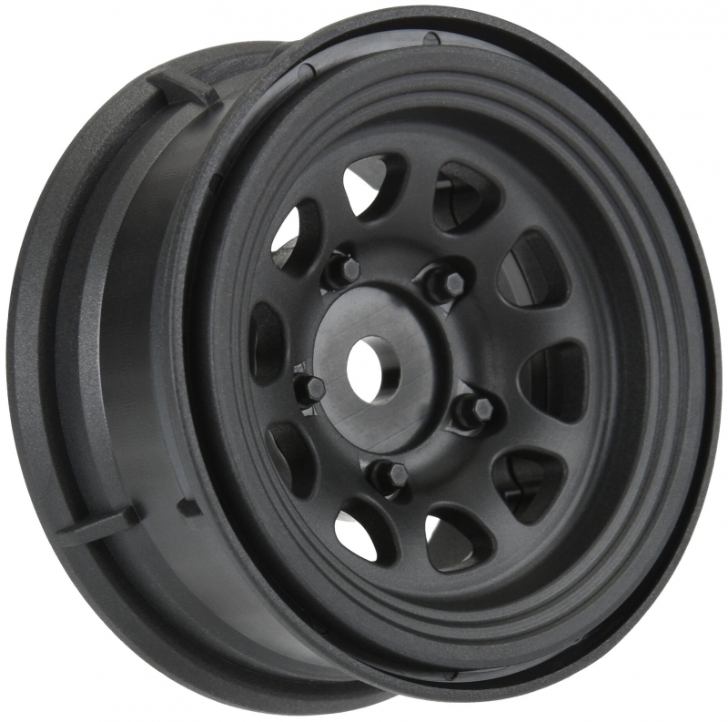 This is a pair of Keystone 1.55" Black Plastic Internal Bead-Loc 12mm Wheels. Pro-Line is proud to introduce our Keystone 1.55" Black Plastic Internal Bead-Loc 12mm Wheels that are Proudly Made in the USA! These Keystone wheels are designed to not only look scale but to be super easy to use by only requiring 5 screws per wheel for mounting tires. The unique 3-piece plastic wheel design bolts together in the back and locks on to Pro-Line's 1.55" Crawling Tires or any other 1.55" Crawling tire. The Keystone 1.55" wheel features 10 D-shaped holes and mimics the style of the popular steel wheels found on full-size trucks. This wheel has a 12mm hex molded in and is designed to fit all popular straight axle rock crawlers on the market. These Keystone wheels are destined to become the new standard in 1.55" crawler wheels. Get your very own set of Pro-Line Keystone 1.55" Black Wheels today!