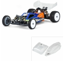 This is an Axis Light Weight Clear Body for the Team Associated B6.4. Featuring a super low-slung design with sharp lines throughout. Cab-forward design provides enhanced steering response while the small side fins balance out the rear of the car with ideal side-bite. The rear of the Axis body has the right amount of clearance for the gearbox and fits the chassis and bulkhead shape of your race buggy perfectly.