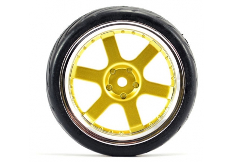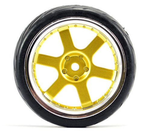 Fastrax 1/10 Street/ Tread Tyre 6-Spoke Gold/ Chrome Wheels (4)