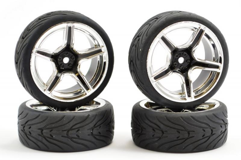 Pre-Mounted sets of 4 wheels and tyres. For 1/10th touring, drift or rally cars with a 12mm hex fit.