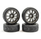 Pre-Mounted sets of 4 wheels and tyres. For 1/10th touring, drift or rally cars with a 12mm hex fit.