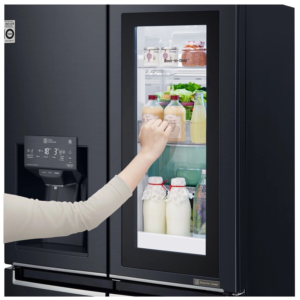 InstaView Door-in-Door Get a sneak peek inside your fridge with the LG InstaView GMX844MC6F Slim American-Style Smart Fridge Freezer. Simply knock twice on the sleek glass panel to light up and grab what you're after without losing lots of cold air.