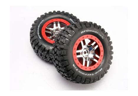 Tires & Wheels, Assembled, Glued (SCT Split-Spoke, Satin Chrome, Red Beadlock Style Wheels, BFGoodrich Mud-Terrain T/A KM2 Tires, Foam Inserts) (2) (4WD F/R, 2WD Rear)