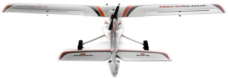 The HobbyZone® AeroScoutT S 2 1.1m makes learning to fly an RC (radio controlled) airplane more fun and easier than ever before! It's the perfect trainer because it's very durable and is equipped with exclusive SAFE® (Sensor Assisted Flight Envelope) technology that helps to prevent overcontrol, loss of orientation and crashes so nearly everyone can learn to fly successfully. It also features Beginner, Intermediate and Experienced flight modes so you can choose the level of stability and control you need at the flip of a switch. The "pusher" power configuration and EPO construction make it more durable than other similar class models. Tricycle landing gear with oversized tires and a steerable nose wheel makes it easy to take off from and land on a wide variety of surfaces from pavement to grass - or you can install the optional floats (sold separately) to fly from ponds and lakes!