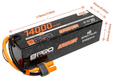 Product Description of Spektrum O-SPMXB3S140 Smart G2 Pro Basher battery 3S 14000mAh 120C with IC5 connector and graphene chemistry