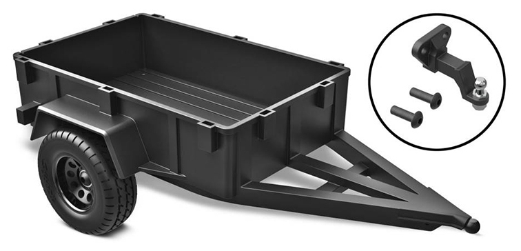 The TRX-4M 1:18 scale utility trailer stows all your scale gear and attaches securely to your truck with the included hitch. Challenge your trailering skills by backing the utility trailer into position using your TRX-4M. Trailer comes fully assembled and ready use. Increase the hauling capacity of your trailer with optional Stake Side Panels (sold separately). Includes hitch, rear pre-load shock spacers (2) and 2.5 x8 mm screws (2).