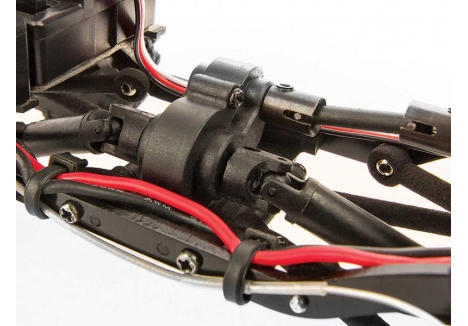 Chassis mounted servo(CMS): The chassis-mounted servo provides maximum steering while maintaining scale looks.