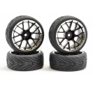 Pre-Mounted sets of 4 wheels and tyres. For 1/10th touring, drift or rally cars with a 12mm hex fit.