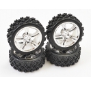 Pre-glued on satin chrome or white 5-spoke wheels.