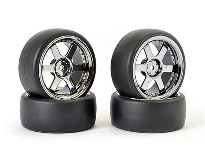 Fastrax 1/10 (4) Drift D1 Tyre W/3mm 6spoke Wheel Bk Chrome