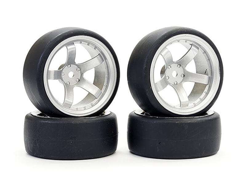 Fastrax 1/10 (4) Drift D1 Tyre W/9mm 5spoke Wheel Satin Sil
