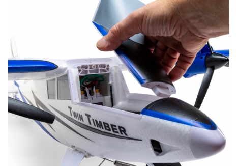 The E-flite® Twin Timber 1.6m is not "just another Timber with another motor" – it's the most capable, durable, stable and unique Timber yet! All the popular features from other Timber models are there: shock-absorbing landing gear with oversized, tundra-style wheels; optional-use leading edge slats; functional flaps; and an LED lighting system with landing, navigation, and strobe lights. The Twin Timber 1.6m also features a large top hatch for faster, easier battery changes. Plus, it's equipped with the strongest landing gear installed on a Timber model yet to improve the durability and STOL capability when flying from rough terrain! The more efficient twin brushless motors are 3S and 4S-compatible and are matched to an exclusive 40-amp Spektrum™ Avian™ Dual Smart ESC that can provide a variety of real-time power system telemetry data with Smart and non-Smart batteries via compatible receivers (including the AR637TA installed in the BNF® Basic version) and Spektrum AirWare™ equipped transmitters. The BNF® Basic version is equipped with an AR637TA receiver to provide full-range, real-time telemetry data, including battery voltage, ESC temp, and more — plus differential thrust and motor reversing for special ground handling and other capabilities — along with the benefits of AS3X® and optional-use SAFE® Select technologies. The larger 2-piece wing adds to the stability, and oversized control surfaces with flaps that can travel both ways offer control and capabilities like Timber X models, including optional-use full-span ailerons. Combined connectors make it easier to install and remove the wing, and there's even a custom-designed clip in the fuselage that holds the wing joiner so you don't lose it when the wing is separated. Best of all, the wing-mounted motors make it nearly impossible to break props or damage the motor and mounts if you ever nose over! They also provide fantastic clearance when flying with the optional floats also used for Timber X 1.2m and Timber 1.5m models. And it all adds up to make this a great first twin-powered, Short Take Off and Landing (STOL), everyday sport and even aggressive aerobatics capable model for a wide range of pilots!
