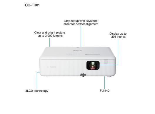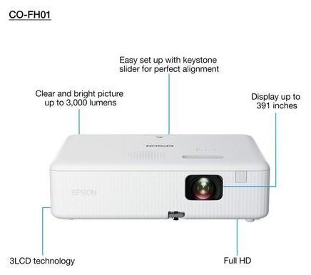 Create the big experience anywhere with the COFH01 Full HD projector from Epson. Suitable for home or office, it has an impressive 391” display and includes 3,000 lumens of brightness for a clear and detailed image. Featuring 3LCD technology, you’ll get a display that is up to three times brighter than other projectors. And, this 1080p model delivers exceptionally colourful images even in bright rooms. Easy to set up and simple to use, watching your favourite movies and sporting events at home is hassle-free.