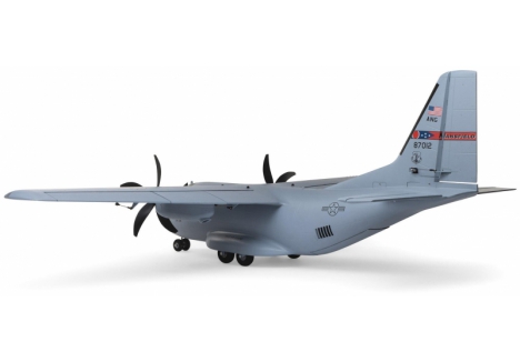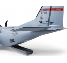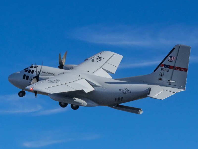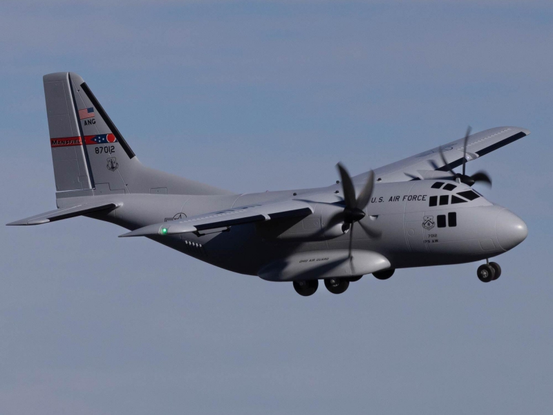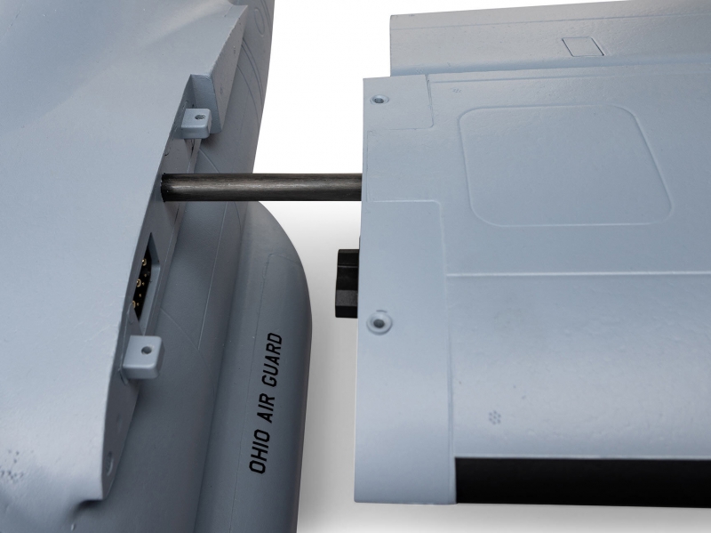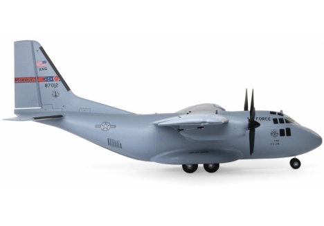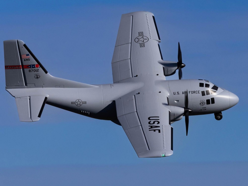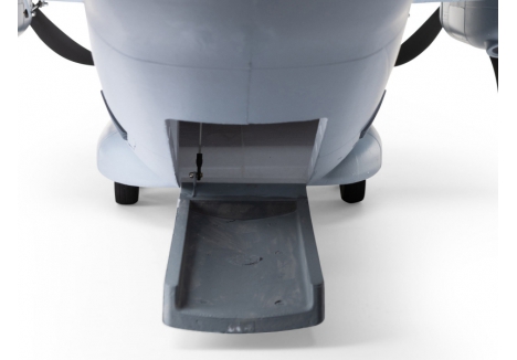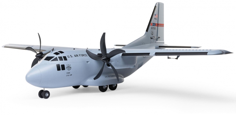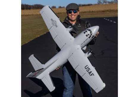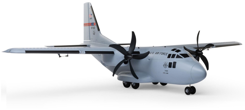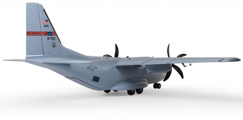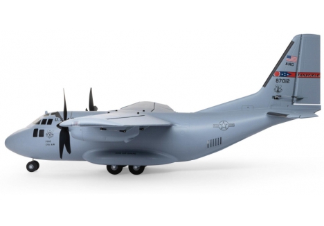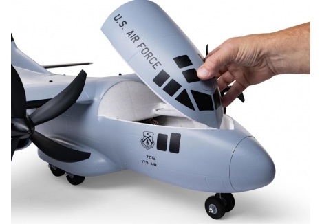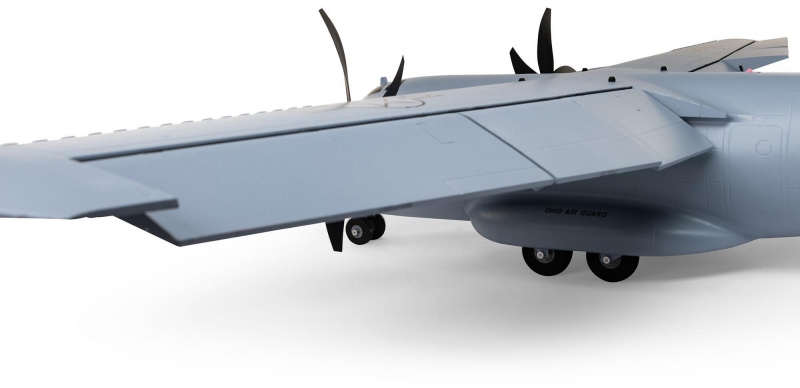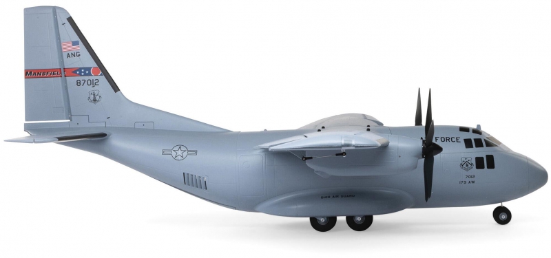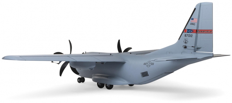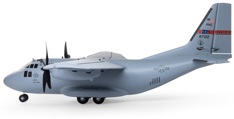 There are eight factory-installed servos, including metal-geared servos on all of the control surfaces plus the functional cargo door so you can carry and drop creative payloads from the large cargo bay. Realistic-looking LED landing, navigation, and simulated strobe lights are powered from the flight battery so you can fly from dawn until dusk - from paved, grass, or dirt surfaces; off snow using the included skis; or from large ponds and lakes using optional floats (sold separately). Remove the magnetically secured nose cone to install a GoPro® or similar camera for recording aerial HD footage or mount a separate FPV camera on the large top hatch (cameras/gear sold separately). Plus, you can use the included decals to customize the now fully-painted gray finish with Ohio Air National Guard, Air Force, Army, Coast Guard, Marines, Navy, and other markings to personalize your model! And the result is the most capable, versatile, and fun to fly twin yet for a wide range of intermediate to experienced pilots interested in scale-like, sport, and even aggressive 3D aerobatic flying.