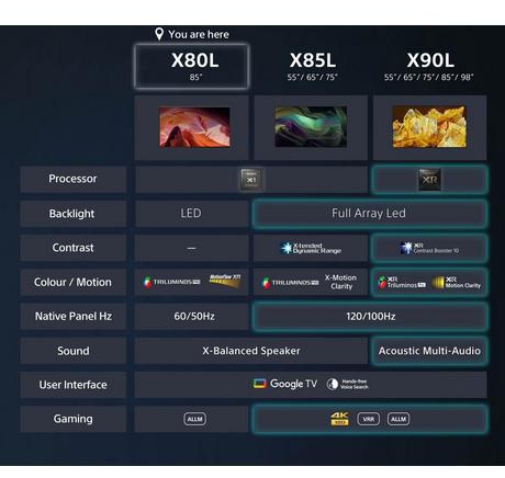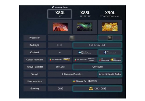 Be amazed by the lifelike quality on the KD85X80LU thanks to Sony’s Triluminos Pro display. Powered by the X1 HDR processor, you can enjoy true-to-life colour and contrast. X-Reality PRO upscales 2D and HD content into close to 4K, so all your favourite content is brought to life. This model also features X-Balanced speakers. Combined with Dolby Atmos and Dolby Vision, the speaker drives movies and music with clear sound. What’s more, equipped with various smart features including apps and streaming services, you’ll get the most out of your TV with Google.