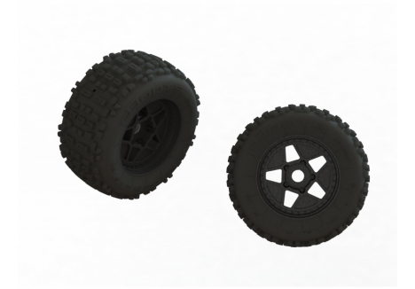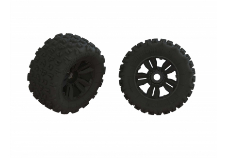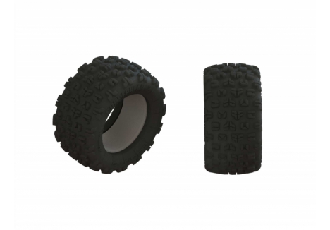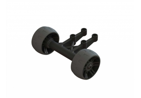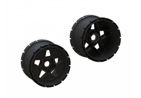 The ARRMA 1/5 scale black monster truck with Smart telemetry and steel drivetrain – C-ARA5808V2T1 rides on oversized dBoots Copperhead 2 tyres designed for all-terrain traction. Their big block tread pattern grips loose surfaces while maintaining stability on hard-packed ground. Mounted on multi-spoke wheels with durable hubs, these tyres absorb shock and resist wear. Combined with oil-filled shocks and steel turnbuckles, they enable the KRATON to blast through dirt, grass, and gravel with confidence.