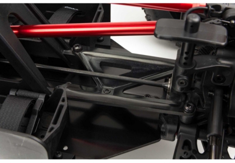 - Multi-Structured Centre Brace System — Featuring anodised 7075-T6 aluminium with laser etching, the reinforced 5mm chassis plate includes strong composite chassis side pods and centre body support, delivering maximum structural rigidity for aggressive driving.