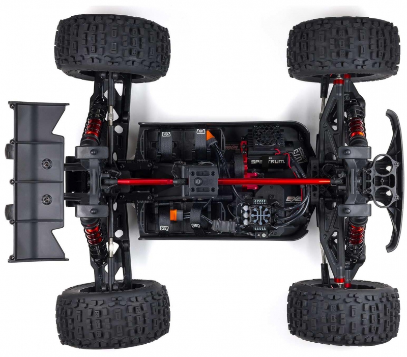 The ARRMA OUTCAST EXB with 5687 1100Kv motor and 160A Smart ESC – C-ARA5810V2T1 is powered by a massive 56mm diameter brushless motor that delivers 10% more torque than previous models. Paired with the updated Spektrum Firma 160A V2 ESC, this system provides smoother throttle response, better punch, and real-time telemetry. The ESC is waterproof and Smart-enabled, allowing drivers to monitor motor RPM, ESC temperature, and battery voltage via the Spektrum Dashboard app. This combination unleashes explosive acceleration and sustained power, making the truck ideal for flips, jumps, and high-speed runs.