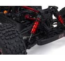 The ARRMA OUTCAST brushless truck with aluminium chassis and oil-filled shocks features a 5mm thick EXB 7075-T6 aluminium plate that forms the structural backbone of the truck. Reinforced with red-anodized CNC aluminium front brace mounts and composite chassis side pods, the chassis resists flex and absorbs impact during extreme landings. A center body support and multi-structured brace system add rigidity, while the modular design allows quick access to key components. This rugged foundation ensures the ARRMA OUTCAST EXB remains stable and responsive, even during high-impact stunts and off-road bashing.