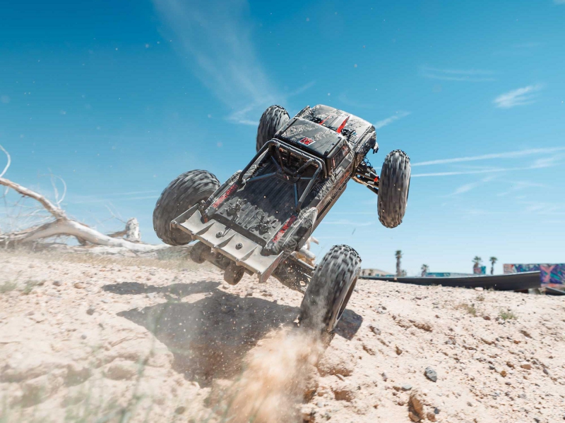 With its EXB-hardened components, 8S-capable power system, and Smart-enabled control, the ARRMA OUTCAST EXB is built for drivers who demand performance and resilience. The steel drivetrain, aluminium chassis, and AVC stability make it one of the best large-scale brushless RC stunt trucks available. Whether you're racing across open fields or tackling technical terrain, the ARRMA OUTCAST EXB delivers unmatched power and precision. Its aggressive styling and matte-gloss finish add visual impact to its already commanding presence.