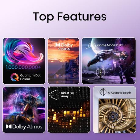 Thanks to Dolby Vision, HDR 10+ decoding & HLG, whether you want to catch up on the latest content or simply enjoy some time with your favourite immersive games, this TV delivers original content with better detail in the shadows and brighter highlights.