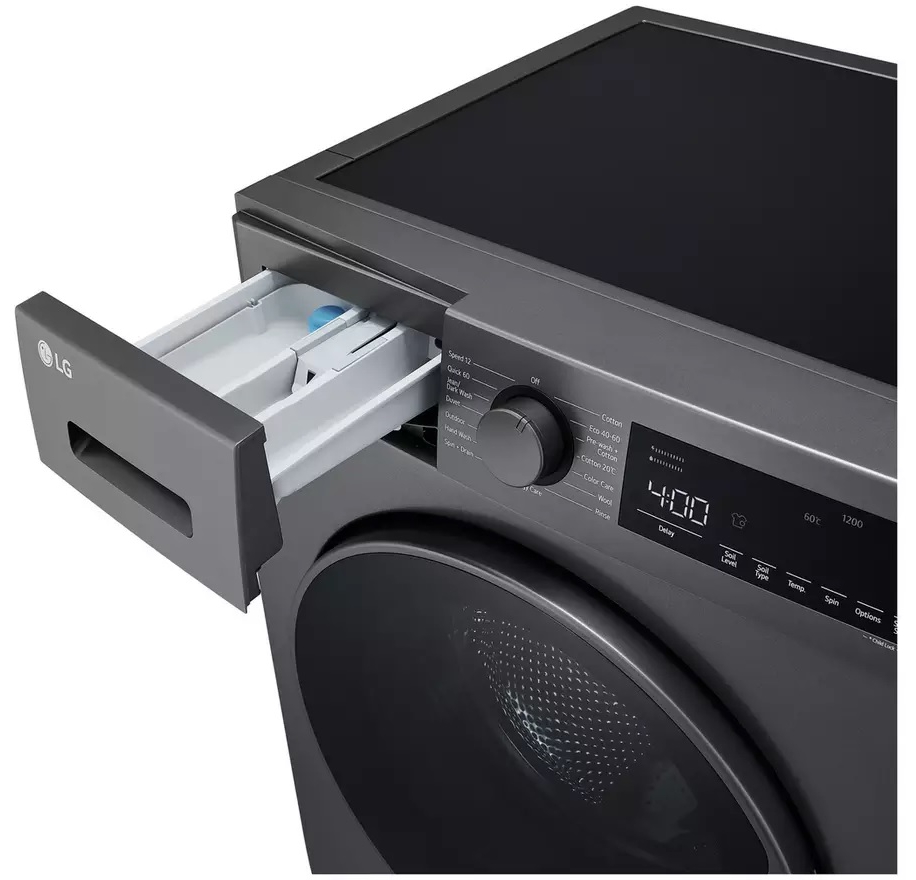 Let this LG washing machine lend a hand with the laundry. The handy Speed 12 function is ideal for powering through light loads – it’ll get your favourite shirt looking good as new in just 12 minutes. And as it spins at a swift 1200rpm, there’s no need to worry about drippy dresses when it comes to unloading. Plus, if you just want to spruce up your Sunday best without running a full wash cycle, the nifty Steam™ mode sees off lingering odours and pesky allergens while saving on energy. Lookin’ good.