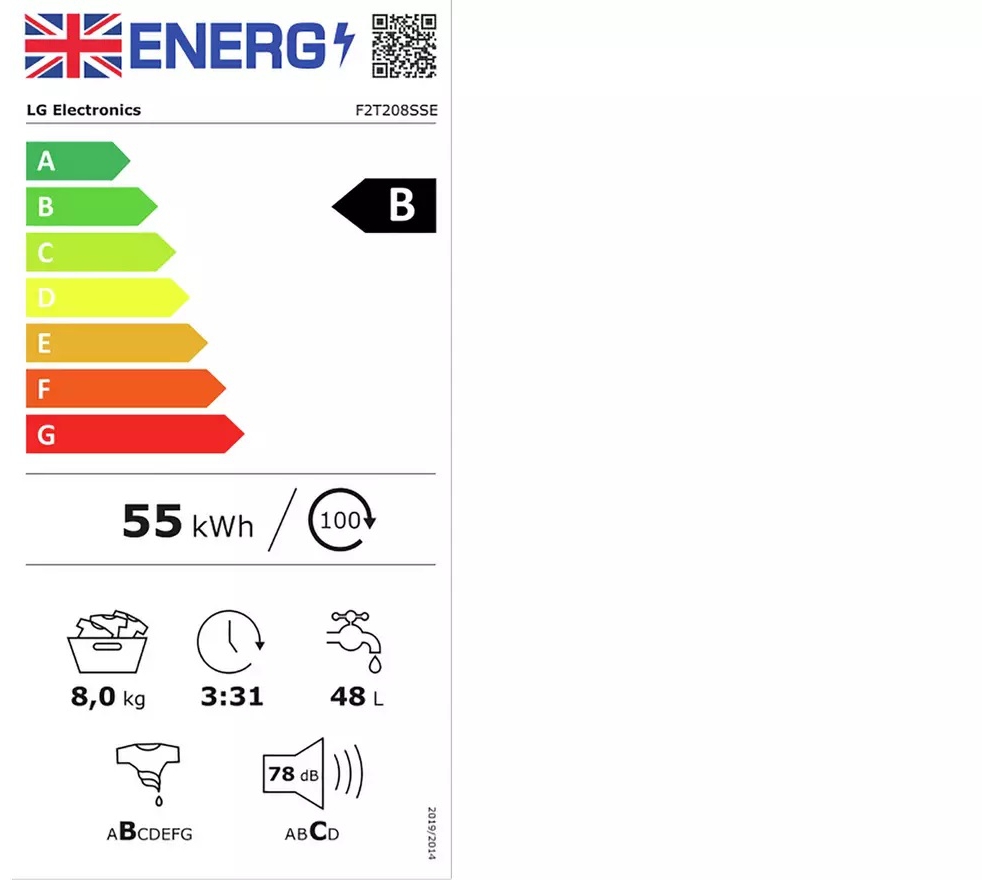 - Energy consumption per wash cycle 0.545 Kwh