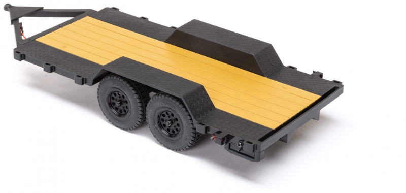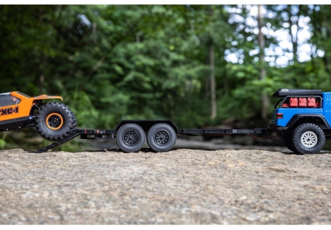 Inexpensive, fully assembled, and ready to use, the Axial SCX24 Flat Bed Vehicle Trailer is more than an exciting scale accessory for your 1/24 scale rig. When transporting your crawler while hitched behind your SCX24, it's an adventure on the move.
