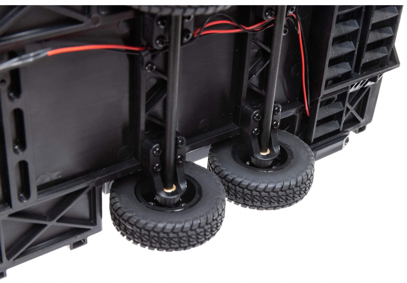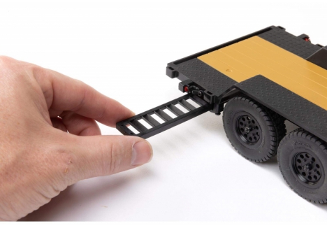 The SCX24 Trailer has been purpose-built for 1/24 scale RC use and is designed specifically to work with any Axial SCX24 rig. It's the real deal, outfitted with an impressive array of fully functional features. Its four 1.75" tall rubber tyres are mounted on 1" wheels that have the same hex size as your SCX24. With the included hitch, it's easy to put your SCX24 to work. A pair of storable, hide-away ramps are provided for loading and unloading vehicles.