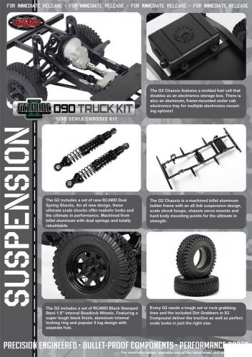 The G2 is completely versatile and can pull off many looks and styles. With the countless options available, RC4WD let's you customize your G2 exactly how you want without sacrificing performance. From emergency and expedition vehicles to daily drivers and hard core rock climbing rigs, the core of the G2 is built for the true off-road enthusiast!