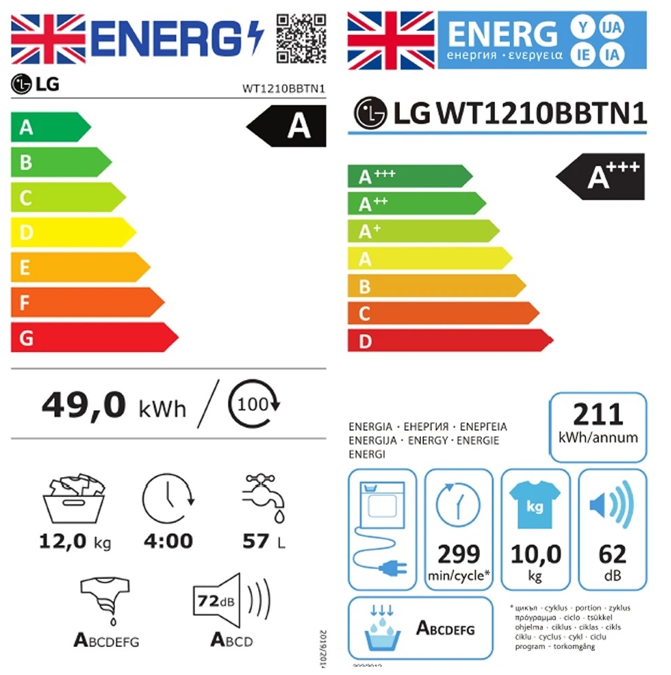- Energy classes A (wash) and A+++ (dry) – High efficiency supported by advanced motors and heat pump technology.