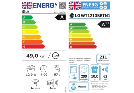 Energy classes of A for washing and A+++ for drying indicate consistently efficient performance across full and partial loads. In practice, this means reduced consumption per cycle, supported by AI motion control and smart drying with the DUAL Inverter Heat Pump™. ThinQ energy monitoring further assists LG WT1210BBTN1 WashTower Platinum Black 12kg Washer 10kg Dryer owners in tracking usage patterns and making adjustments. For households wanting value with lower emissions, this configuration brings measurable efficiency gains alongside premium wash and dry results, reinforcing an affordable long-term ownership profile.