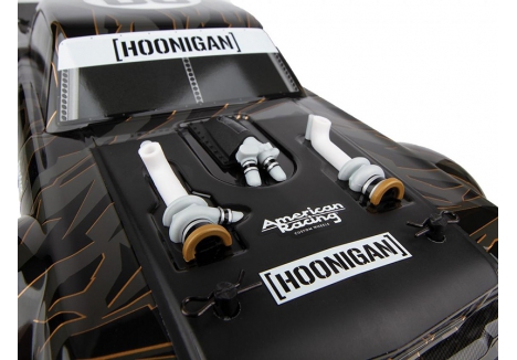 Team Associated is excited to partner with Hoonigan(R) to bring you their world-famous Hoonicorn in radio-controlled form. Built on an updated and improved Reflex 14 chassis, the Team Associated Hoonigan(R) Hoonicorn is a tire-slaying beast!
